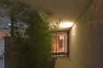 - View of the courtyard, the studio and living room spaces with the blind closed in the background