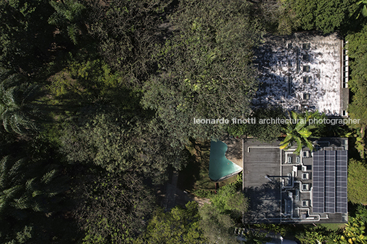 “Entre 1963-5 os arquitetos realizam algumas propostas compactas e estratificadas, são variantes de uma mesma idéia de “casa-apartamento”, cujo programa é acomodado em apenas um pavimento, sobre pilotis, com planta aproximadamente quadrada, duas empenas paralelas mais abertas, duas mais fechadas e distribuição da ocupação interna em três faixas paralelas às fachadas mais abertas protegidas por largos beirais planos, por onde também se situam escadas exteriores de acesso. Com essas características são realizadas as casas Bento Odilon Ferreira em Goiânia (1963), a casa Francisco Malta Cardoso, em São Paulo (1964), e as duas casas “gêmeas” para a família do arquiteto e de sua irmã, situadas em lotes vizinhos no bairro City Butantã, com aparência e dimensões quase idênticas embora o arranjo de plantas e as aberturas apresentem pequenas variações.