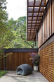 In the interior, iconic pieces of Brazilian Design make up the space, such as the Radar armchair and Rio chair by Carlos Motta and Atibaia chair by Paulo Alves. The upper floor has four suites, including the master suite, which receives a wooden private deck over the living room roof. As security and protection, but guaranteeing functionality, the traditional railing is replaced by a bench with the same wood as the floor.