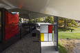 the modular construction of the cubes has proven sufficiently flexible to accommodate various uses, from the house that the building was originally designed as, to the gallery it now is and was always envisaged as becoming. within the space available beneath the umbrella roof, the inner building can take on different configurations.