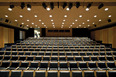 o desenho do chão tem maior liberdade. a diferença de nível entre a praça de acesso (726,80) e acolhimento (723,00) propiciou a implantação de um anfiteatro ao ar livre, voltado para o edifício. o pequeno desnível entre o acolhimento (723,00) e o foyer do auditório (724,20) além de potencializar o uso deste espaço como local de eventos, promove certa independência de uso num espaço único. as lajes de piso sob a biblioteca e sob as salas de aula realizam a extensão do território, flutuando sobre o lago, em nível com o acolhimento (723,00). estas lajes de piso também são nervuradas, seguindo o mesmo módulo da cobertura.