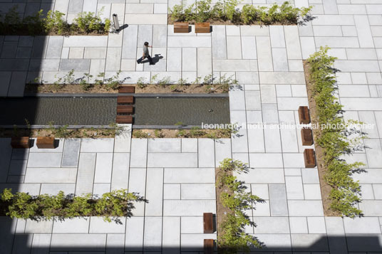 - Aerial view of the courtyard made by a pattern with concrete platform and water