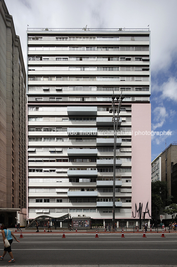 - Edifício Três Marias ARQUITETO: Abelardo de Souza ANO: 1952 ÁREA DO TERRENO: 2.580 m² ÁREA CONSTRUÍDA: 20.785 m² Nº DE PAVIMENTOS: 18 USO: Habitacional com comércio no térreo PAISAGISMO: Miranda Magnoli e Rosa Kliass CONSTRUÇÃO: Companhia Nacional da Indústria da Construção (CNI) LOCAL: Av. Paulista (esq. Rua Haddock Lobo) - nº 2239 - Jardim Paulista - São Paulo - SP - Brasil ESTRUTURA: Concreto PERÍODO DE CONSTRUÇÃO: 1952 - 1956 ESTADO DE CONSERVAÇÃO: Bom DESCARACTERIZAÇÃO: Baixa PUBLICAÇÕES: - Acrópole, nº 184, p 172-173, ago 1953. - Habitat, nº 7, p 18-20, 1952 TOMBAMENTO: CONPRESP (2004) - em processo https://www.arquivo.arq.br/edificio-tres-marias #av.paulista #LAMA-SP
