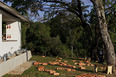 A origem da obra de arte (2002) is a seminal installation in the oeuvre of Marilá Dardot. Originally presented at her first solo show, at Museu de Arte da Pampulha, in Belo Horizonte, the work invites the interaction of the spectator, who is enticed to compose words and sentences and to distribute them through the field. Each letter has the shape of an earthenware plant pot (or is it the contrary?) and there are planting tools, soil and seeds available for the spectator’s use. To house the work and to serve as a basis for the creation of the text, a small shed was built, which resembles a greenhouse or gardening studio. The 1,500 plant-pot/letters were produced by the ceramic workshop that operates at Inhotim, in a process that took several months and involved the participation of dozens of women from the surrounding communities.