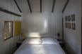 The social area is actually a large balcony, open, connected to nature, sometimes protected by the canopy of trees, sometimes catching sight of the sea between the leaves. At the perimeter, a wooden bench plays the role of guardrails. This space has awnings as the only closure. At the back, the service and private areas receive modular panels that delimit the space. The doors and windows also function as panels, aligned with the partitions and with exposed solid wood uprights.