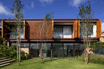 The FN residence is located in the countryside of São Paulo, in the city of Itatiba. The terrain presented a significative level difference and its location to the roads dictaded the access to be made from the lower level.The design approach resulted in the creation of a flat area on the higher side, allowing the house to have a view of the horizon. The architectural program was distributed in two perpendicular axes, defining the volumes that support the different functions. At the intersection of those volumes, the main access and the vertical circulation organize levels and the internal flow of activities. The first volume emerges from the landscape across from the site profile, supported by columns. The second is parallel to the horizon, creating a plateau where the recreation are is located. The formal simplicity, enhanced by the regularity of the Wood panels used in the exterior planes, does not demonstrate the complexity of the internal spaces, since to some architectural elements were atributted double meanings. Such as the main access; it presents itsef behind a big wood panel on the axis of the columns, opening up to an ample staircase, wich is also the entrance hall. From this access, a gallery, open to the sunlight by a glass roof and wood kindlings, distributes the flow from the social área and allows access to the service área, which has an independent entry as well.Or the main bedrooms, located over the columns, where the absence of eaves was circumvented with the creation of a second vertical plane which protects these areas from exposure to the weather and allowed the existence of independent balconies.On the plateau, inside the second volume, are the social areas, alternated with internal and external gardens, open to the veranda and the pool deck. In the same direction, the guest accomodations enjoys a certain independence from the main áreas, composing, along with the other wings, an open and closed spaces intercalation inserted into a light and clear structural frame.