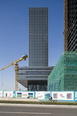 The raised base of the SSE is a three-storey cantilevering podium floating 36m above the ground, with a floor area of 48,000m2 and an accessible roof garden. The podium and lower tower contain the dedicated stock exchange functions, with the SSE offices, registration and clearing house, Securities Information Company and ancillary services located higher in the tower. The tower is flanked by two atria – a void connecting the ground directly with the trading floor. Staff enter to the west, the public to the east.